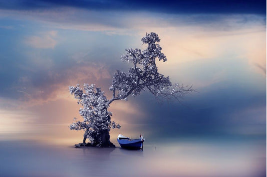 Tree & Boat on Lake Scenery View Home Decor Premium Quality Poster Print Choose Your Sizes