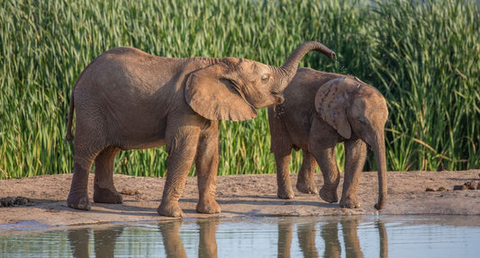 Baby Elephants Near Lake Scenery Photograph Home Decor Premium Quality Poster Print Choose Your Sizes
