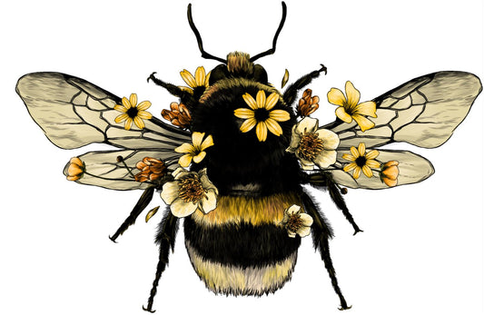 Bee with Flowers Vector Painting Home Decor Premium Quality Poster Print Choose Your Sizes