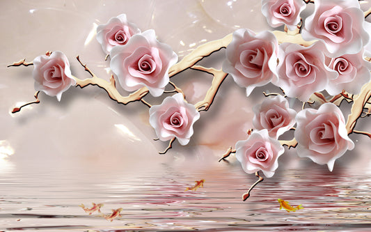 Pink & Gold Flowers Tree Branch 3D Design Home Decor Premium Quality Poster Print Choose Your Sizes