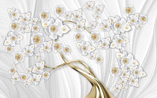 White & Gold Flower Tree 3D Design Home Decor Premium Quality Poster Print Choose Your Sizes
