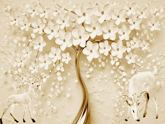 Gold & White Deers with Tree Design Home Decor Premium Quality Poster Print Choose Your Sizes
