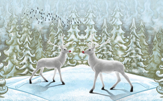 Reindeers in Forest Painting Home Decor Premium Quality Poster Print Choose Your Sizes