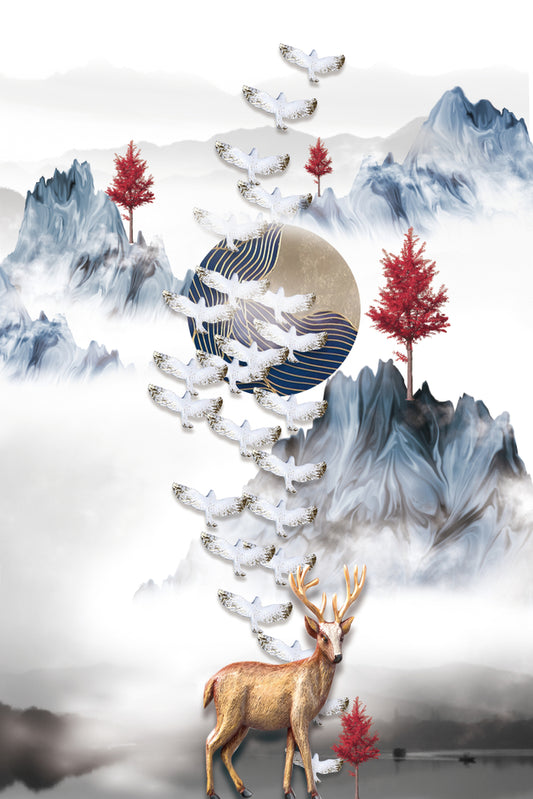 Mountains & Deer Nature 3D Design Home Decor Premium Quality Poster Print Choose Your Sizes
