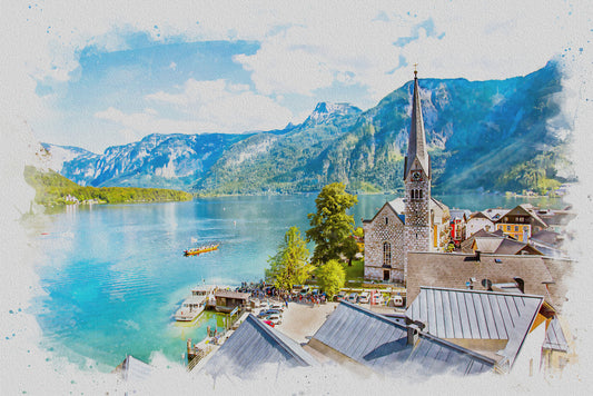 View Point of Hallstatt Painting Home Decor Premium Quality Poster Print Choose Your Sizes