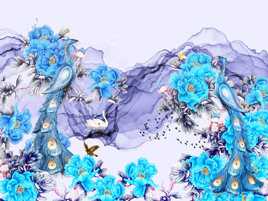 Peacocks & Flower Tree 3D Design Home Decor Premium Quality Poster Print Choose Your Sizes