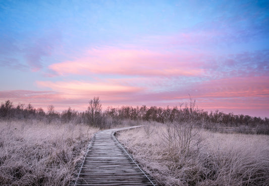 Wooden Foot Path on Grass Sunset Home Decor Premium Quality Poster Print Choose Your Sizes