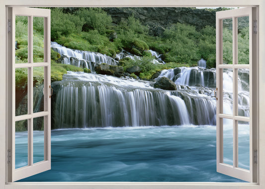 Waterfall Window View Photograph Home Decor Premium Quality Poster Print Choose Your Sizes