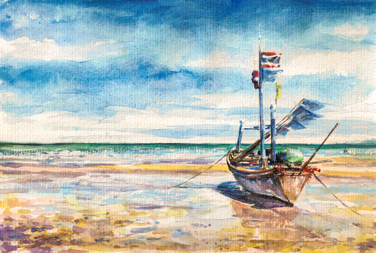 Boat on Sea Digital Art Painting Home Decor Premium Quality Poster Print Choose Your Sizes