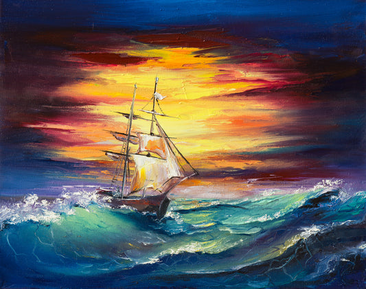 Boat on Rough Sea Oil Painting Home Decor Premium Quality Poster Print Choose Your Sizes