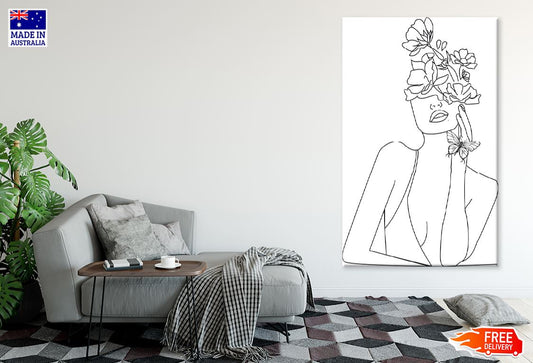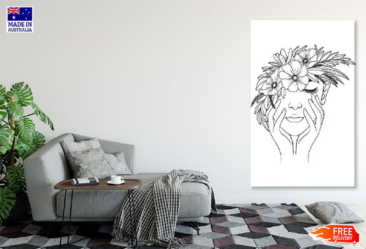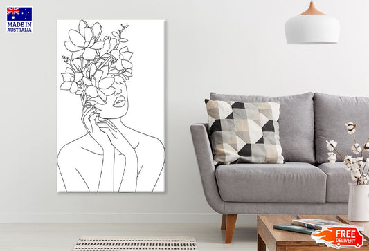 Flowers & Woman Face B&W Line Art Design Print 100% Australian Made