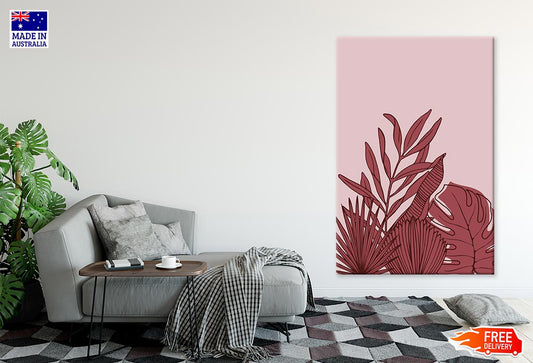 Maroon Leaves & Pink Background Line Art Print 100% Australian Made