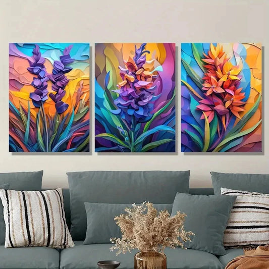 3pcs Vibrant colorful flowers, floral Metal Print Ready to Hang Art
