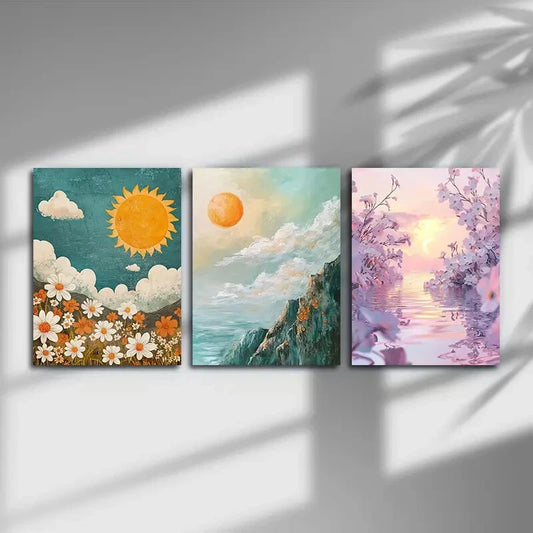 3pcs Sunflower Vibrant Floral Landscape Decor Metal Print Ready to Hang Art