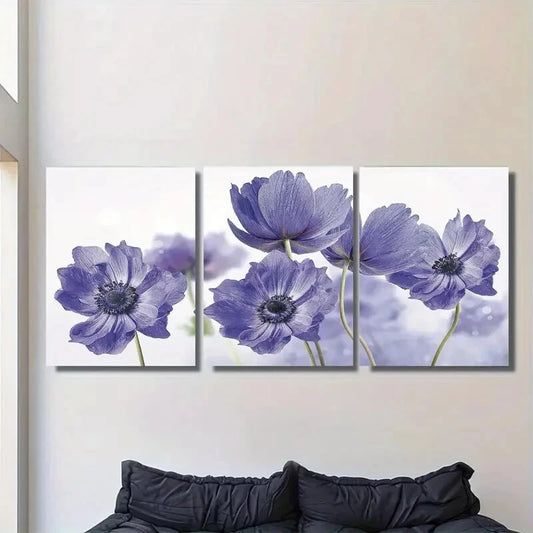 3pcs Panel Purple Flower Classic Floral Metal Print Ready to Hang Art