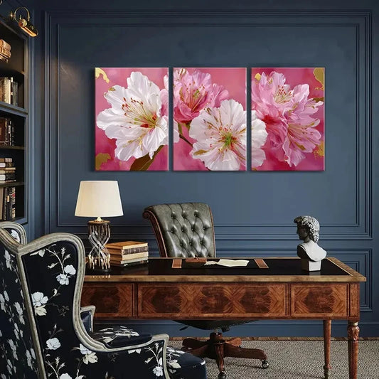 3pcs Elegant Floral Art Pink White Flowers Metal Print Ready to Hang Art