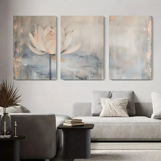 3pcs Abstract Watercolor Floral Lotus Flower Metal Print Ready to Hang Art