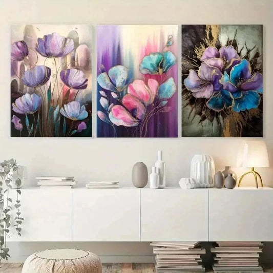 3pcs Abstract Floral Art Delicate Flowers Metal Print Ready to Hang Art