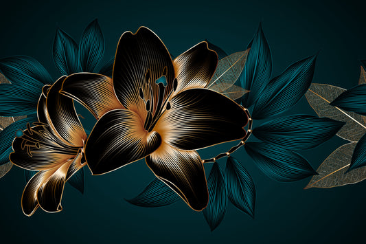 Vintage Luxury Seamless Floral Background with Golden Lilly Flowers Print 100% Australian Made