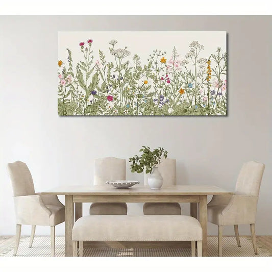 Vintage Floral Botanical Flowers Colorful Wall Art canvas office home room framed 120x60cm