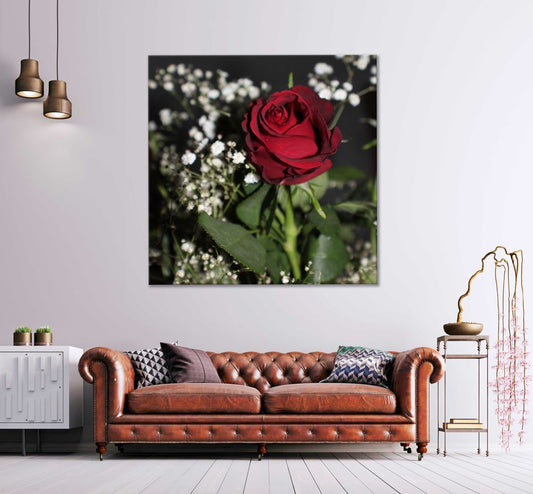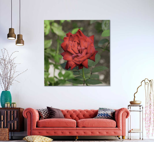 Square Canvas Red Rose with Leaves View Photograph High Quality Print 100% Australian Made