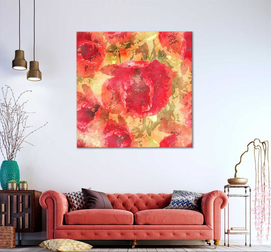 Square Canvas Red Poppies Oil Painting Art High Quality Print 100% Australian Made