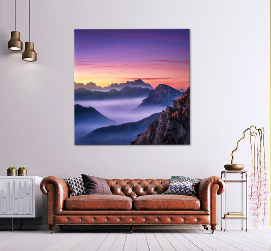 Square Canvas Alpine Mountain Valley Clouds View High Quality Print 100% Australian Made