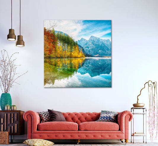 Square Canvas Autumn Almtal Valley Scenery View High Quality Print 100% Australian Made