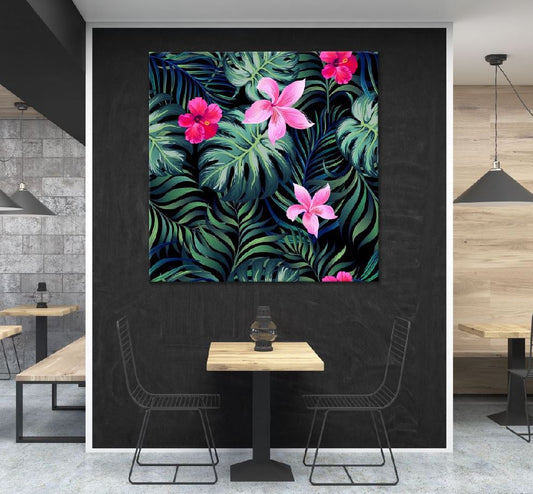 Square Canvas Hibiscus & Orchid Vector Art High Quality Print 100% Australian Made