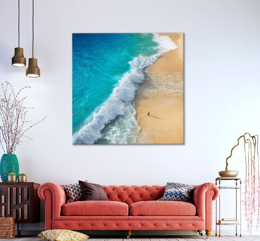 Square Canvas Man on Seashore Aerial View High Quality Print 100% Australian Made