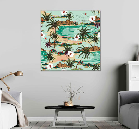 Square Canvas Palm Trees Island Sea Vector Art High Quality Print 100% Australian Made