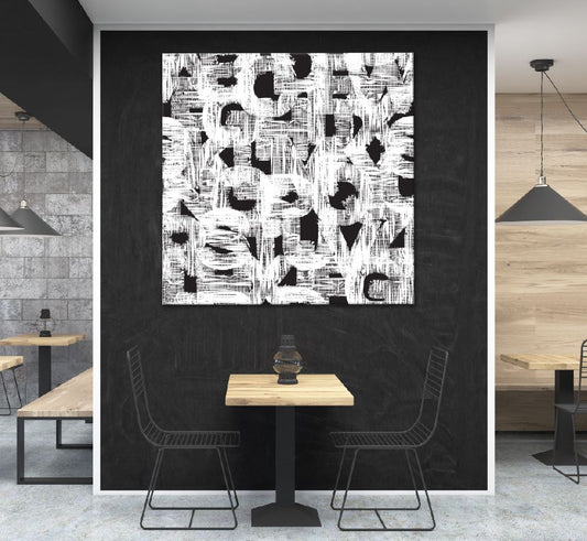 Square Canvas Abstract Acrylic B&W Painting Art High Quality Print 100% Australian Made