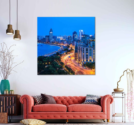 Square Canvas Shanghai Bund & Curved Light Photograph High Quality Print 100% Australian Made