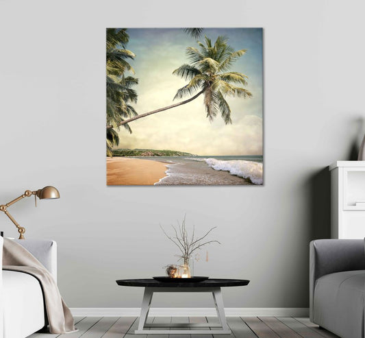Square Canvas Palm Tree & Sea Vintage View Photograph High Quality Print 100% Australian Made