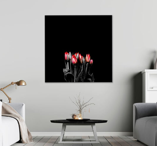 Square Canvas Red Tulips Flowers Dark View High Quality Print 100% Australian Made