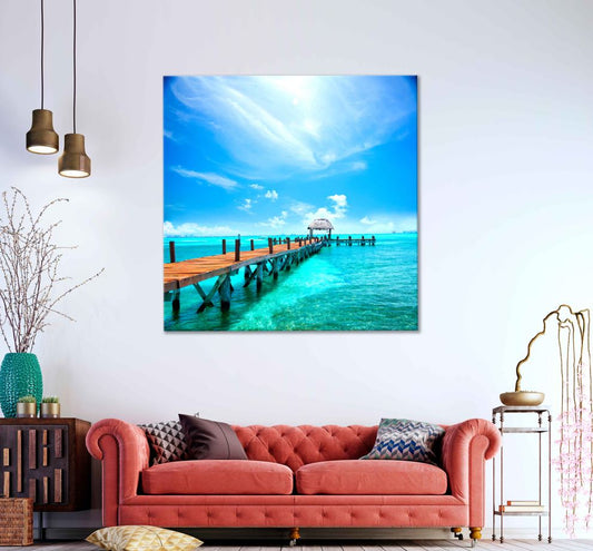 Square Canvas Resort Jetty near Cancun View Photograph High Quality Print 100% Australian Made