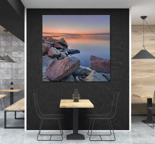 Square Canvas Rocks on Sea Sunset Scenery Photograph High Quality Print 100% Australian Made