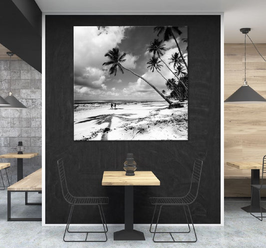 Square Canvas Palm Trees near Sea B&W Photograph High Quality Print 100% Australian Made