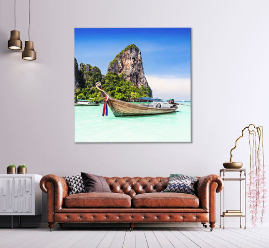 Square Canvas Longtail Boat Beach Photograph Thailand High Quality Print 100% Australian Made