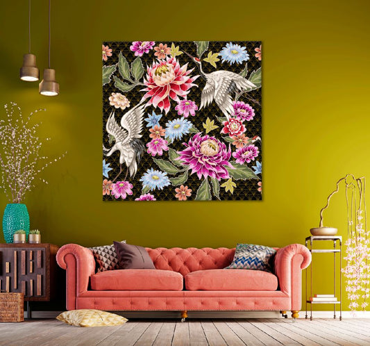 Square Canvas Bird with Flowers Vector Art High Quality Print 100% Australian Made