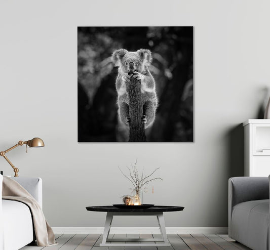 Square Canvas Koala Bear on Tree Branch B&W Photograph High Quality Print 100% Australian Made