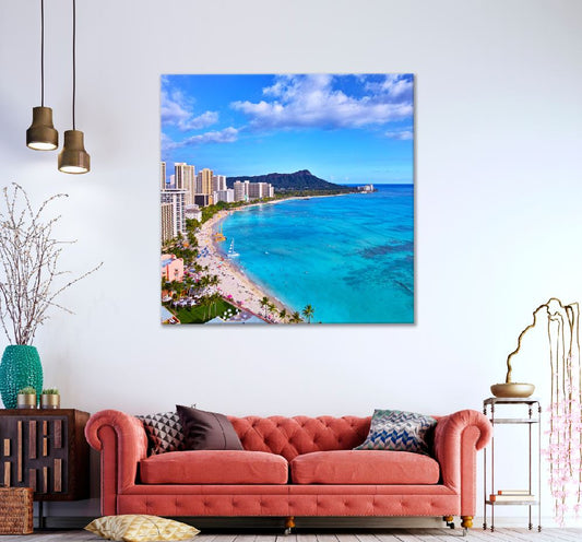 Square Canvas Waikiki Beach Ocean City View Photograph High Quality Print 100% Australian Made