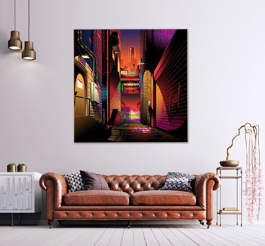 Square Canvas Dark City Alley Night View Photograph High Quality Print 100% Australian Made