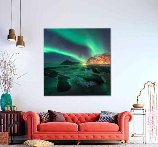 Square Canvas Aurora Borealis Beach View High Quality Print 100% Australian Made