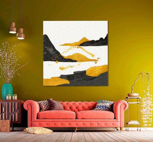 Square Canvas Gold & Black Mountain Vector High Quality Print 100% Australian Made