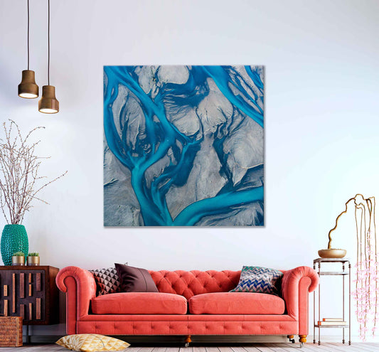 Square Canvas Blue Braided Rivers Abstract High Quality Print 100% Australian Made