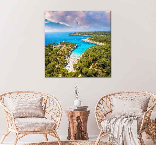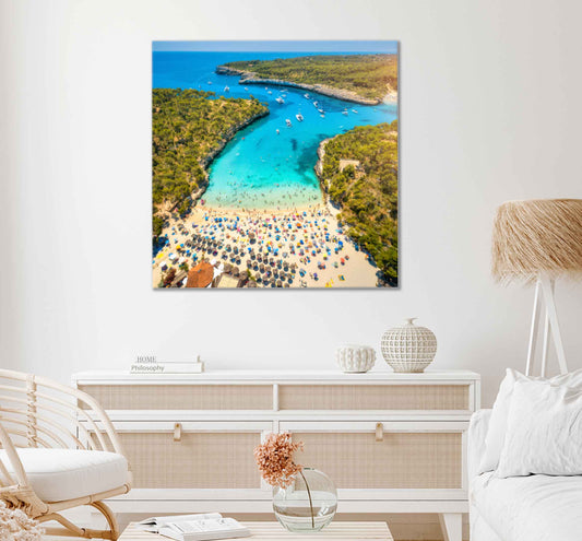 Square Canvas View of Sandy Beach Ocean High Quality Print 100% Australian Made
