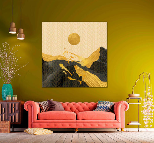 Square Canvas Golden Mountain & Moon Vector Art High Quality Print 100% Australian Made
