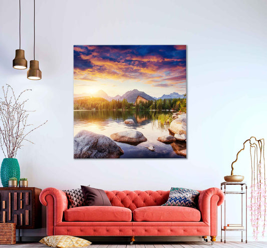 Square Canvas Lake Strbske Pleso Mountain & Sunrise High Quality Print 100% Australian Made