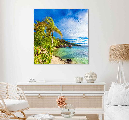 Square Canvas Sandy Beach With Palm Trees High Quality Print 100% Australian Made